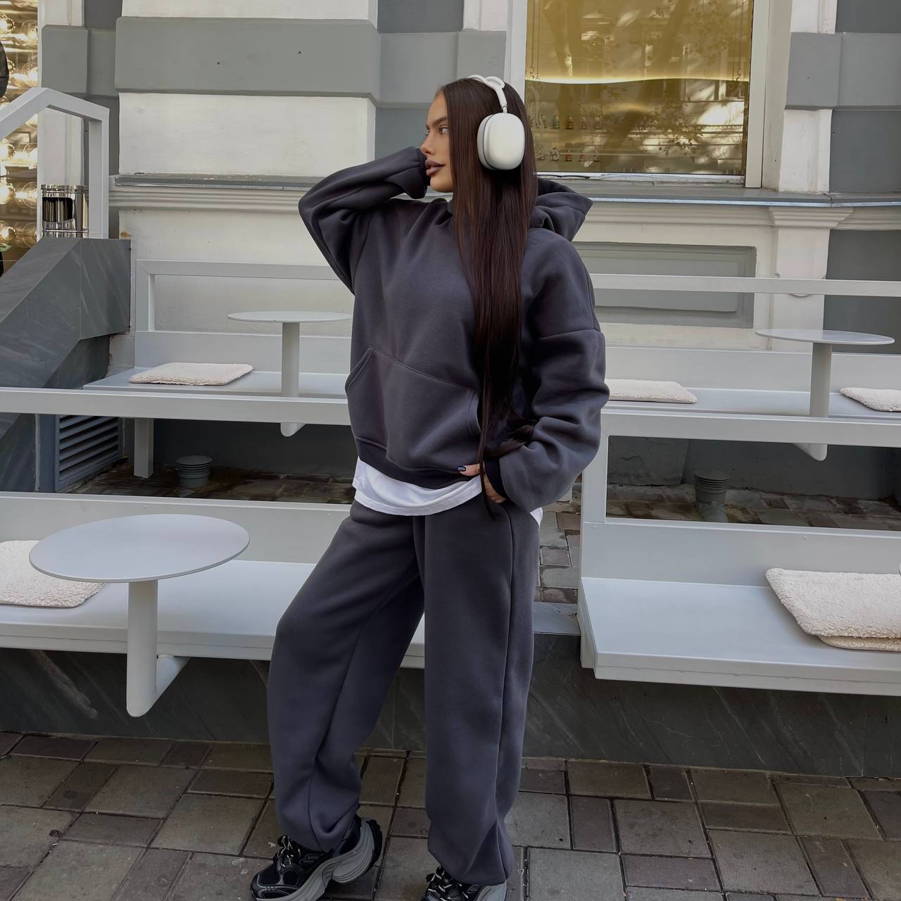 Объемный худи с турецкой рыбаной, ДВОЙНЫЙ капюшон, джогеры оверсайз.