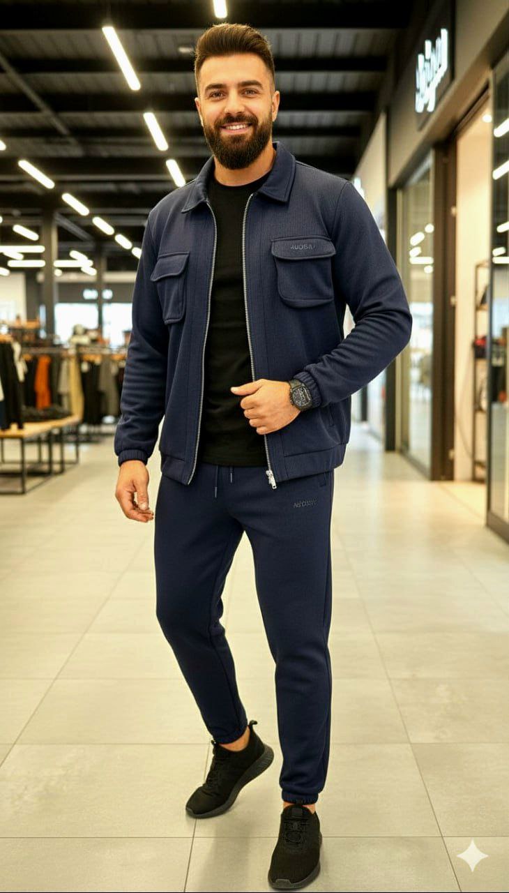 Будьте первым, кто оставил отзыв на “Костюм мужской: Кофта на молнии с накладными карманами+Брюки на резинке синий”