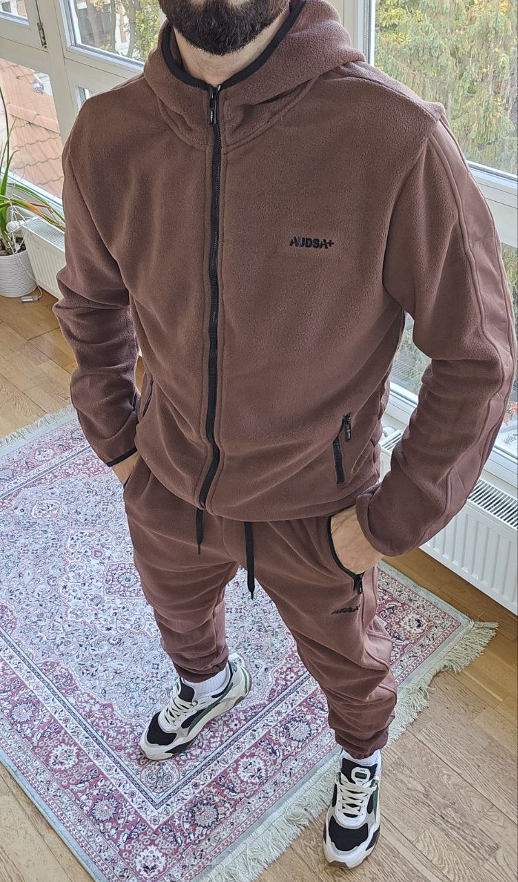 Костюм мужской теплый: Кофта на молнии с капюшоном+Брюки с эластичной резинкой (флис) шоколад
