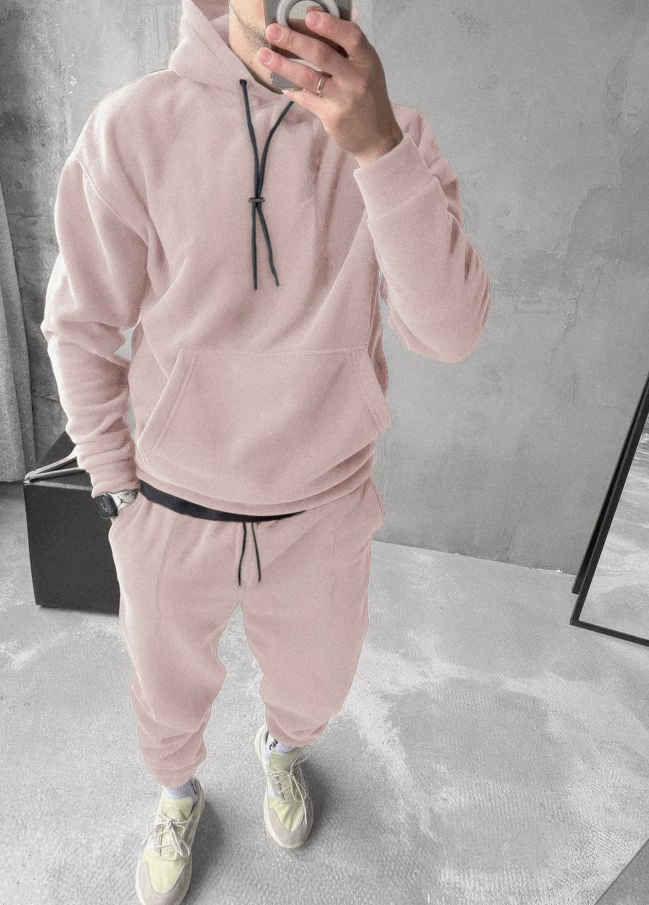Костюм мужской флисовый с начесом (худи+штаны) светлый беж