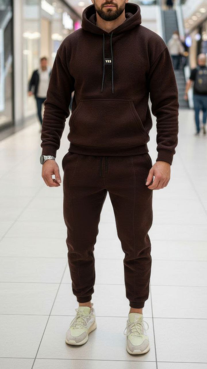 Костюм мужской (Худи с накладным карманом+штаны с эластичным поясом) шоколад
