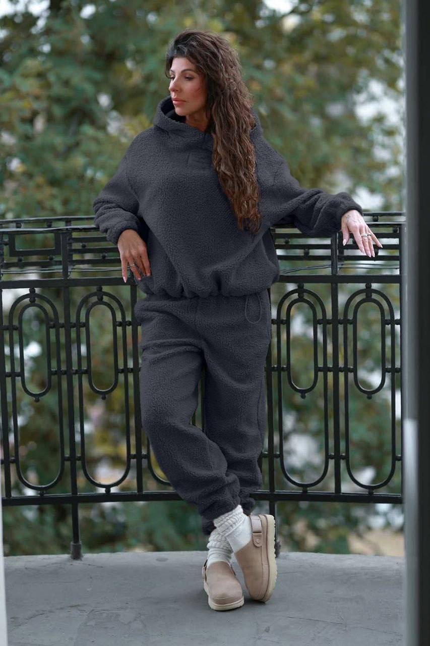 Костюм оверсайз для прогулки (Тедди на флисе) кофта+штаны графит