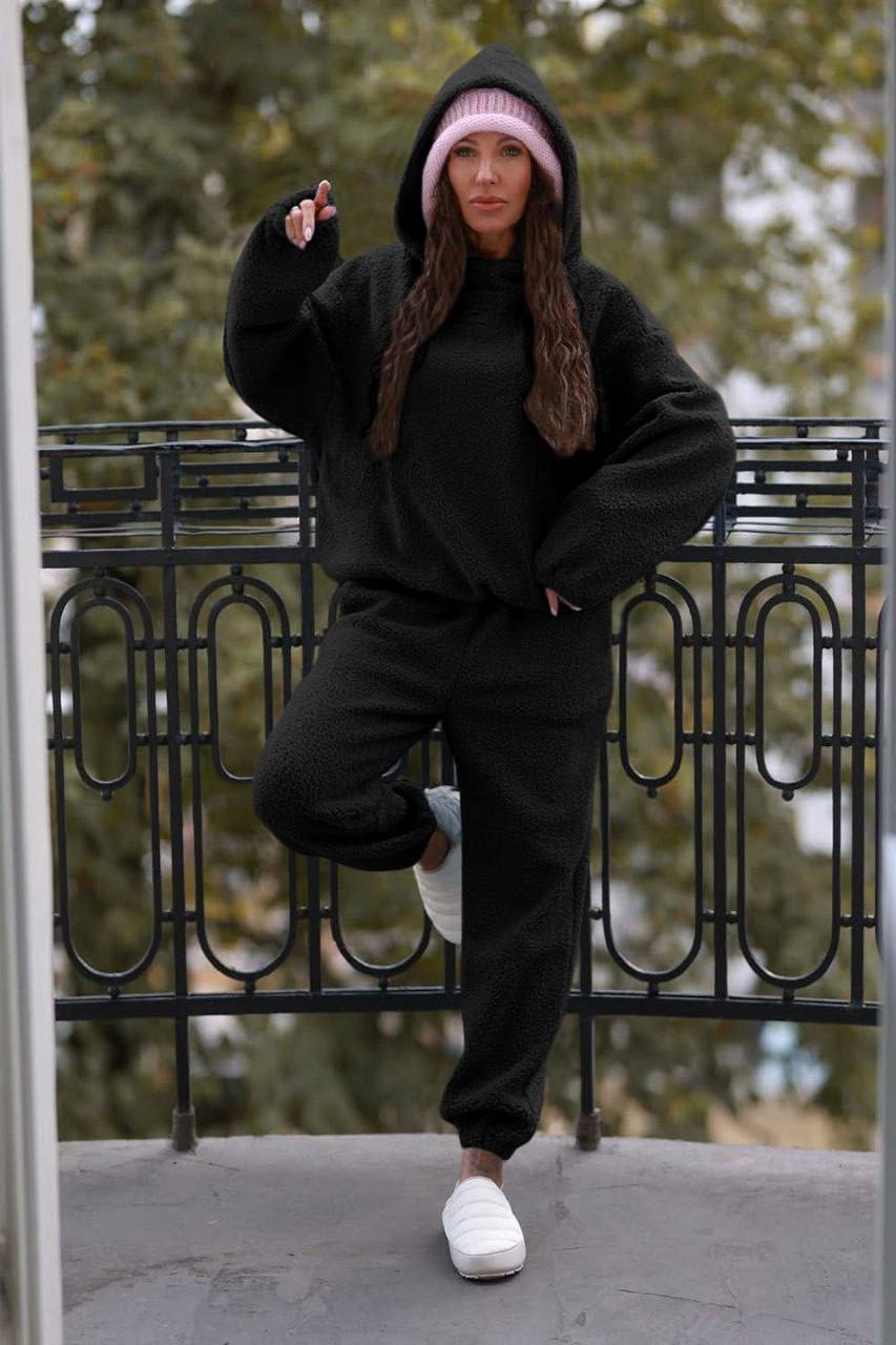 Костюм оверсайз для прогулки (Тедди на флисе) кофта+штаны черный
