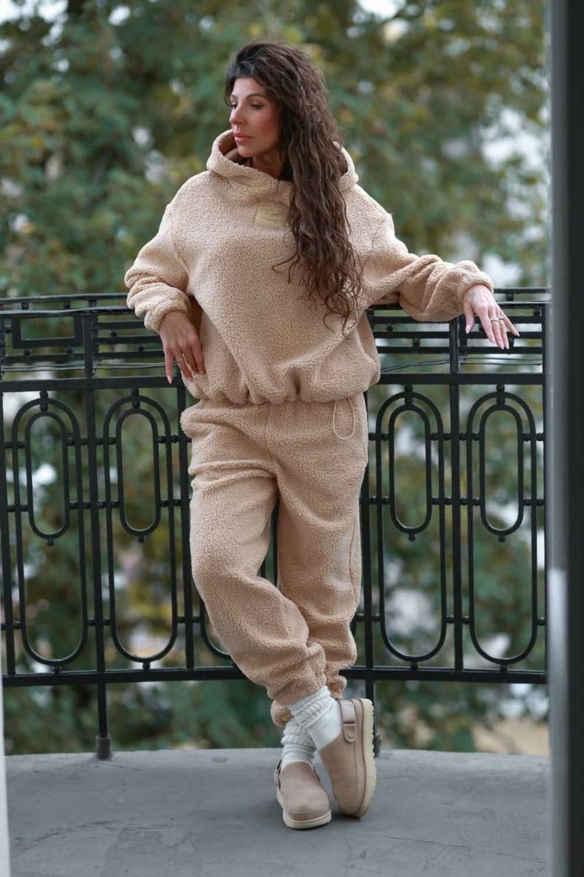 Костюм оверсайз для прогулки (Тедди на флисе) кофта+штаны беж