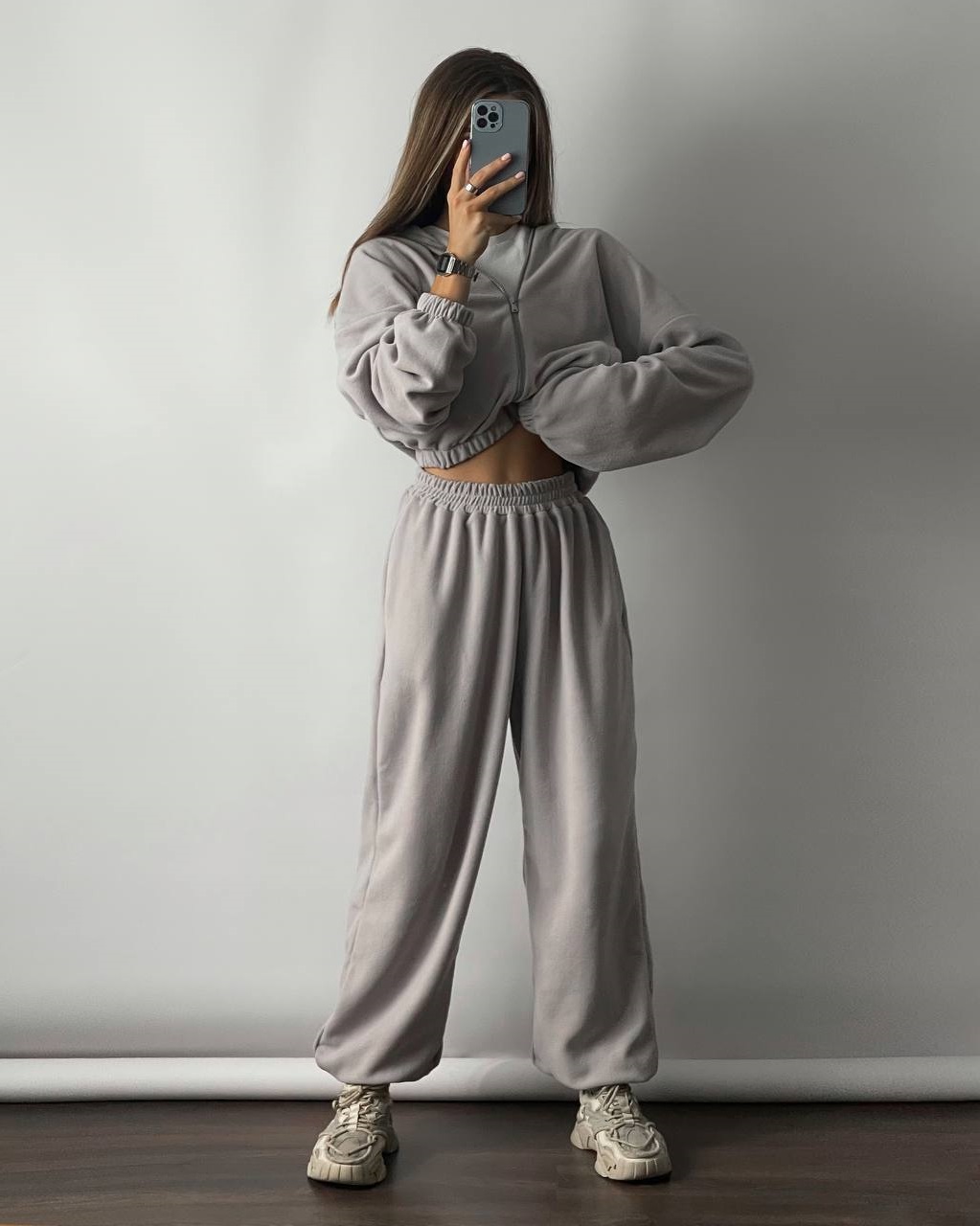Головна » Магазин » ОДЕЖДА » ЖЕНСКИЕ СПОРТИВНЫЕ КОСТЮМЫ » Костюм свободного кроя кофта+штаны из мягкого флиса серый