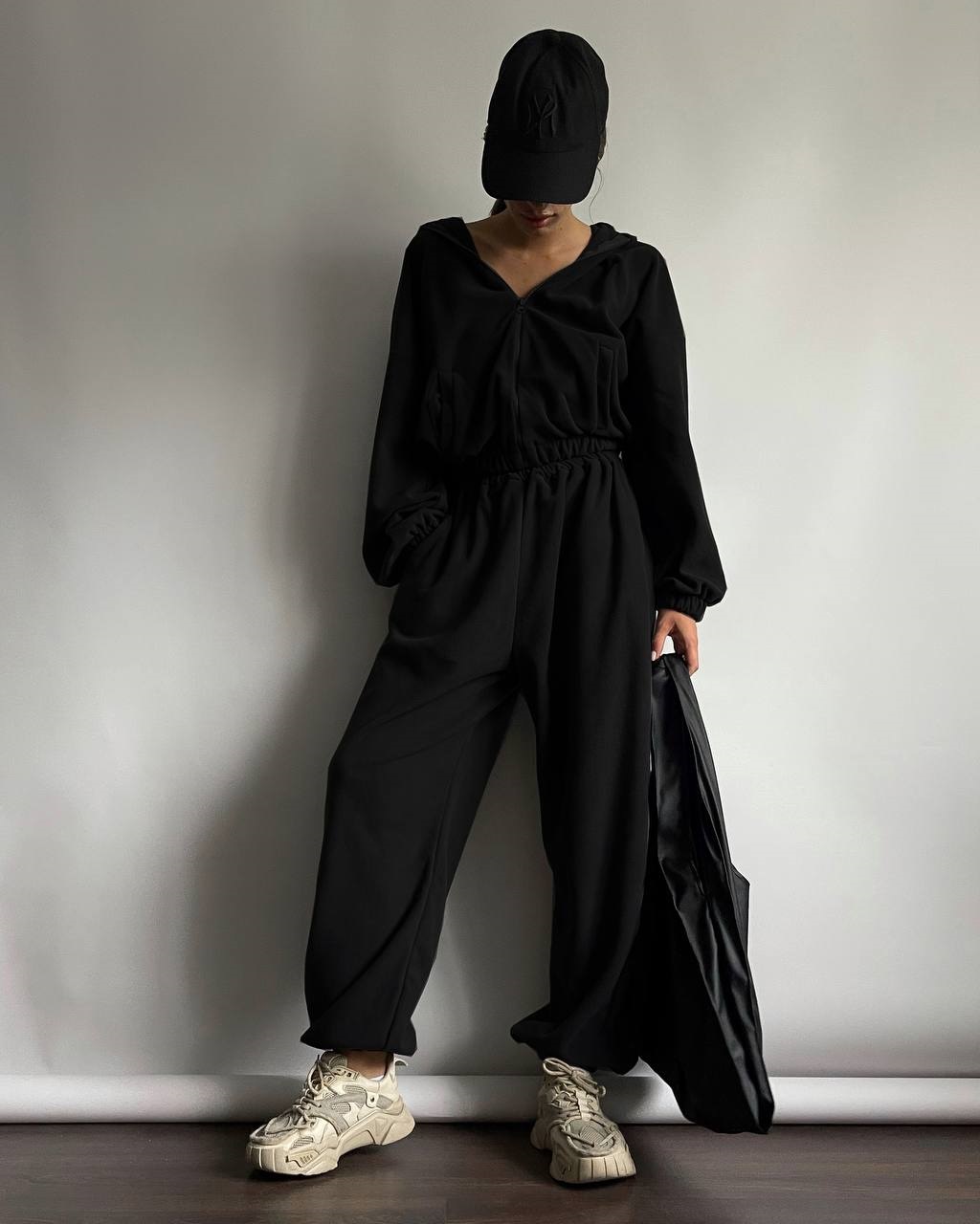 Головна » Магазин » ОДЕЖДА » ЖЕНСКИЕ СПОРТИВНЫЕ КОСТЮМЫ » Костюм свободного кроя кофта+штаны из мягкого флиса черный