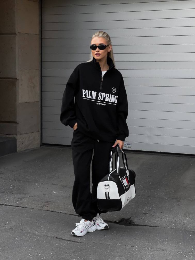 Костюм свободного кроя (кофта с накатом+воротником на молнии+брюки) черный