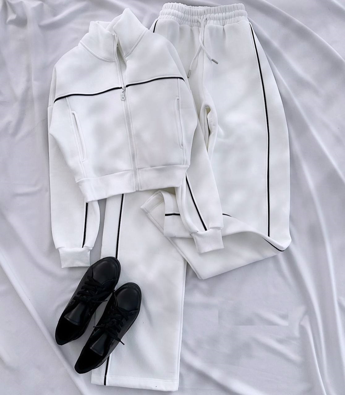 Головна » Магазин » ОДЕЖДА » ЖЕНСКИЕ СПОРТИВНЫЕ КОСТЮМЫ » Костюм спортивный: кофта без капюшона на молнии+штаны (трехнитка на флисе) белый