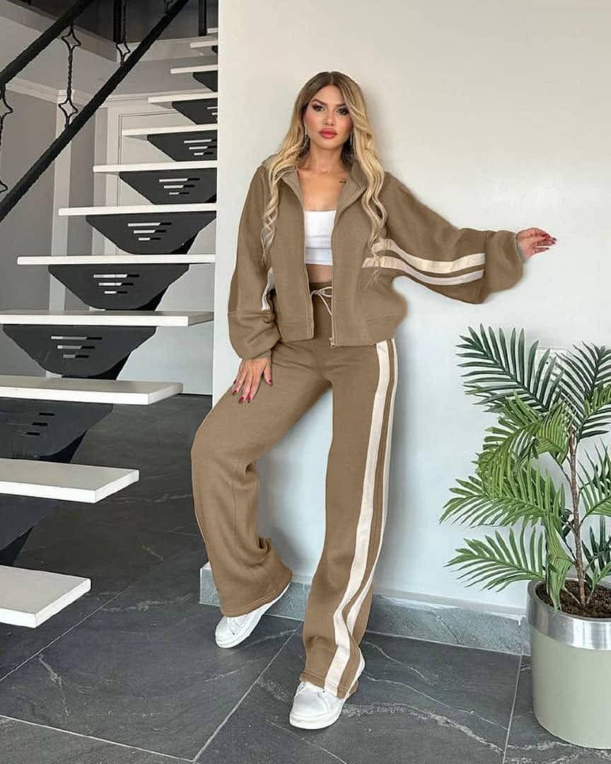 Костюм с полосками: Кофта на молнии+штаны мокко