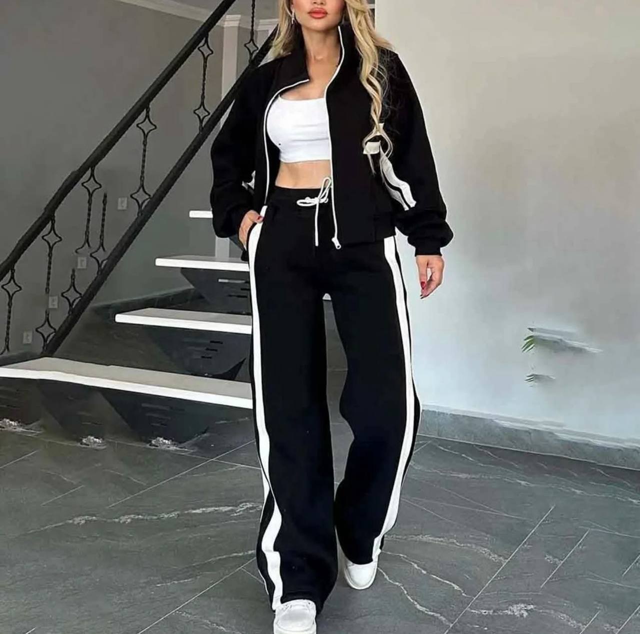 Будьте первым, кто оставил отзыв на “Костюм с полосками: Кофта на молнии+штаны черный”