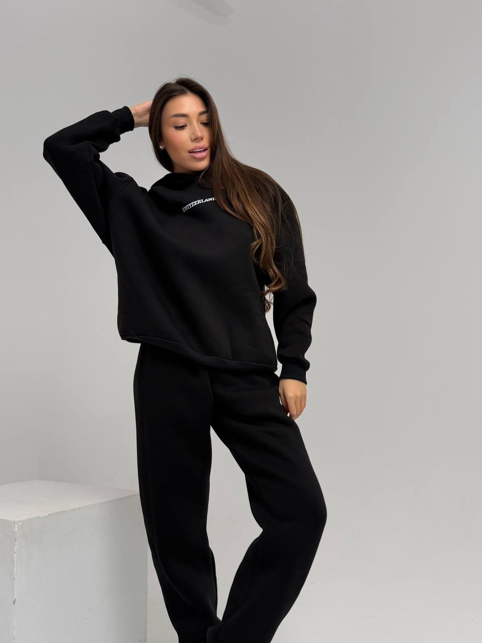 Костюм теплый (худи с накатом+брюки низ на резинке) трехнитка на флисе черный