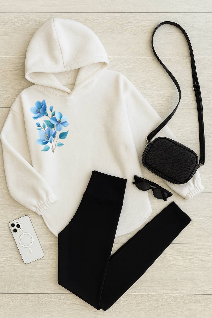 Костюм (флиска с капюшоном+накатом+лосины на флисе) белый