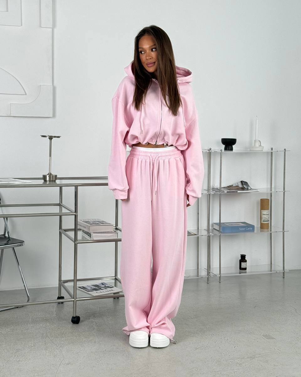 Костюм Худи на молнии с кулиской по талии+штаны розовый