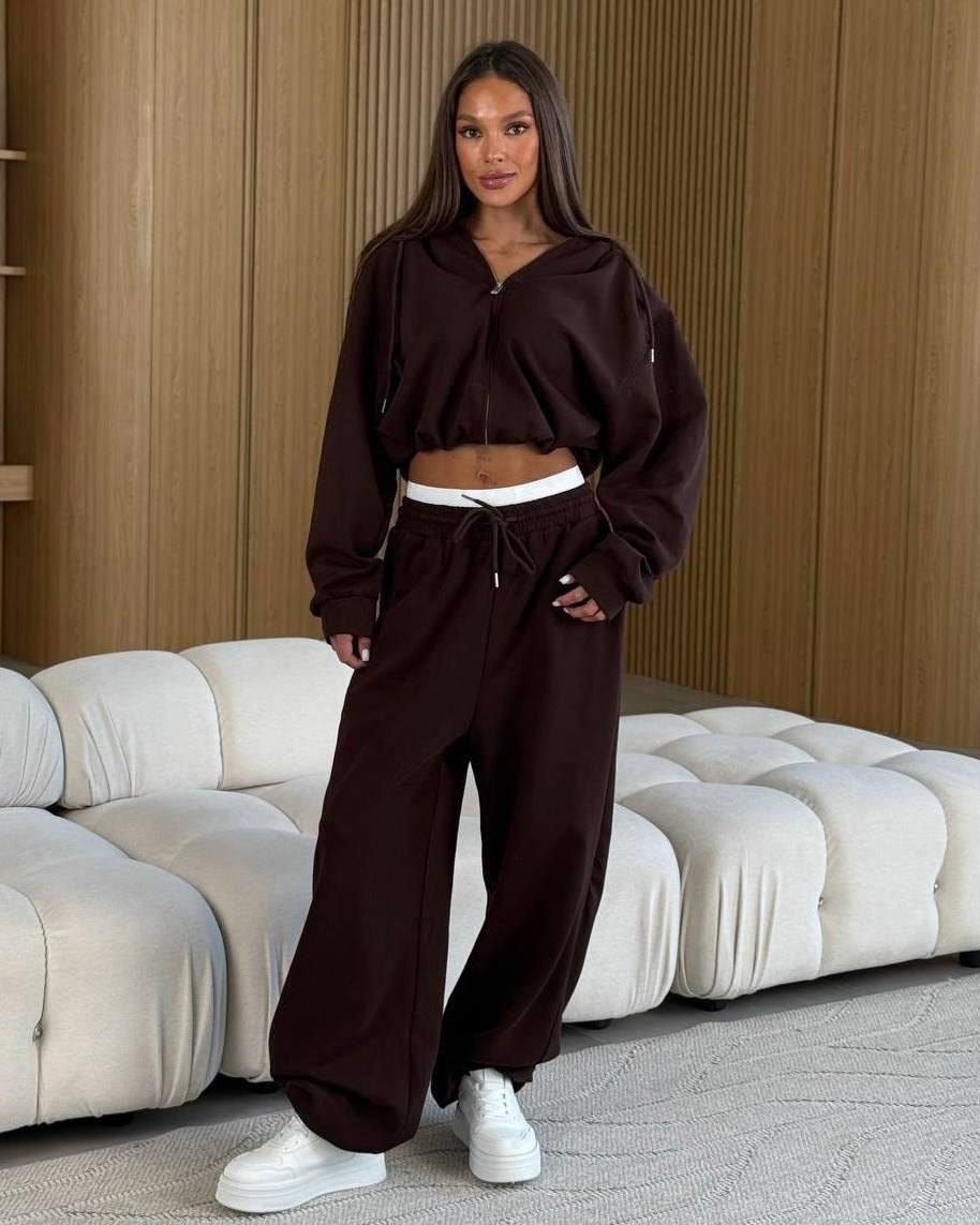 Костюм Худи на молнии с кулиской по талии+штаны шоколад