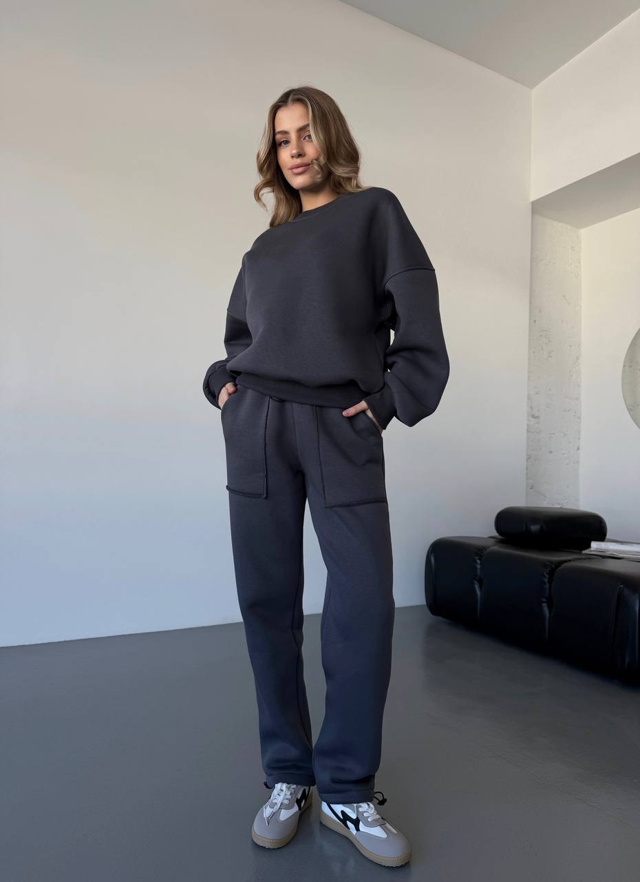 Костюм 2-ка: Свитшот свободного кроя+брюки с накладными карманами графит