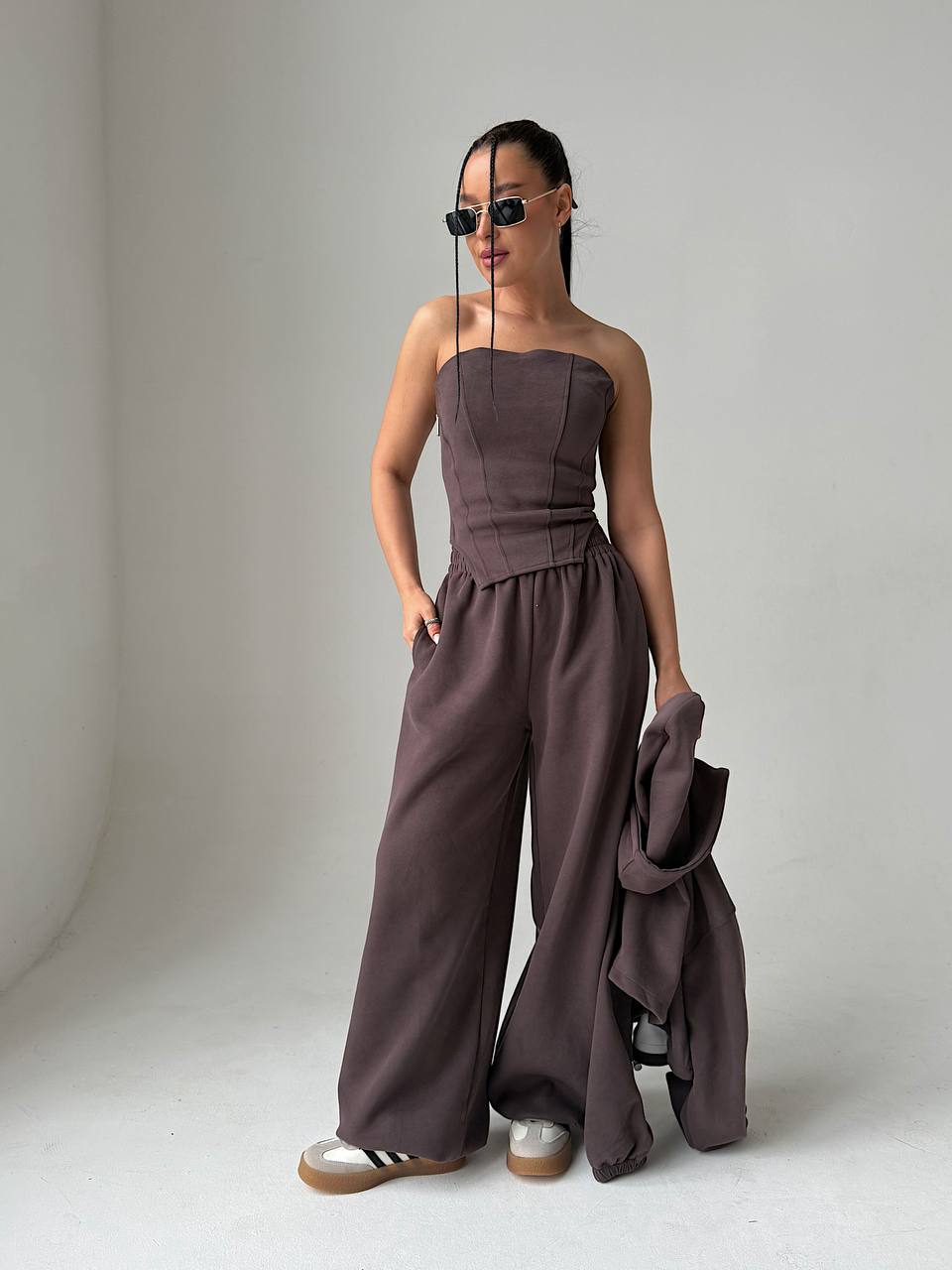 Костюм 3-ка oversize (штаны, кофта, корсет) шоколад