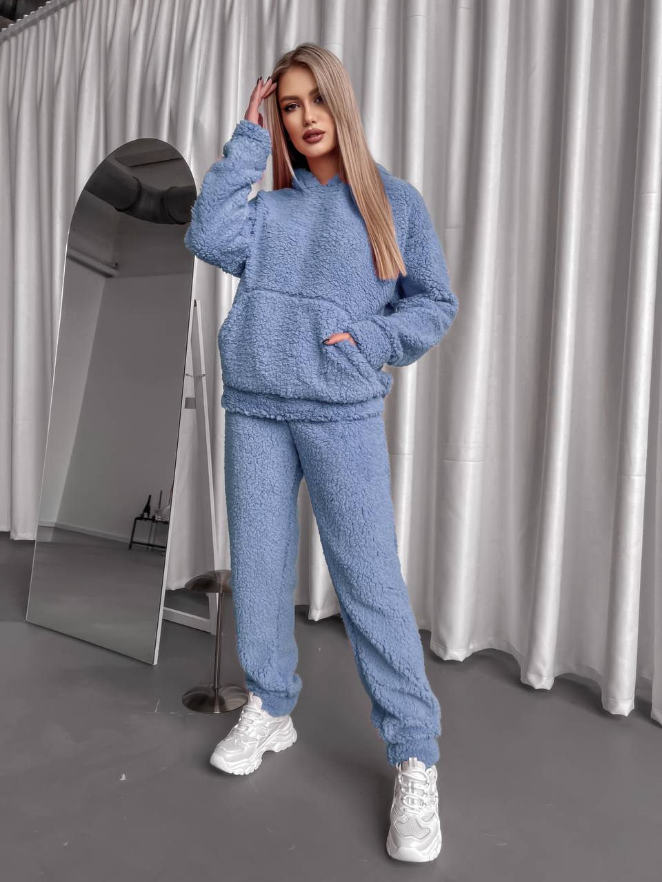 Костюм «Teдди» кофта с капюшоном+штаны с резинкой на поясе голубой
