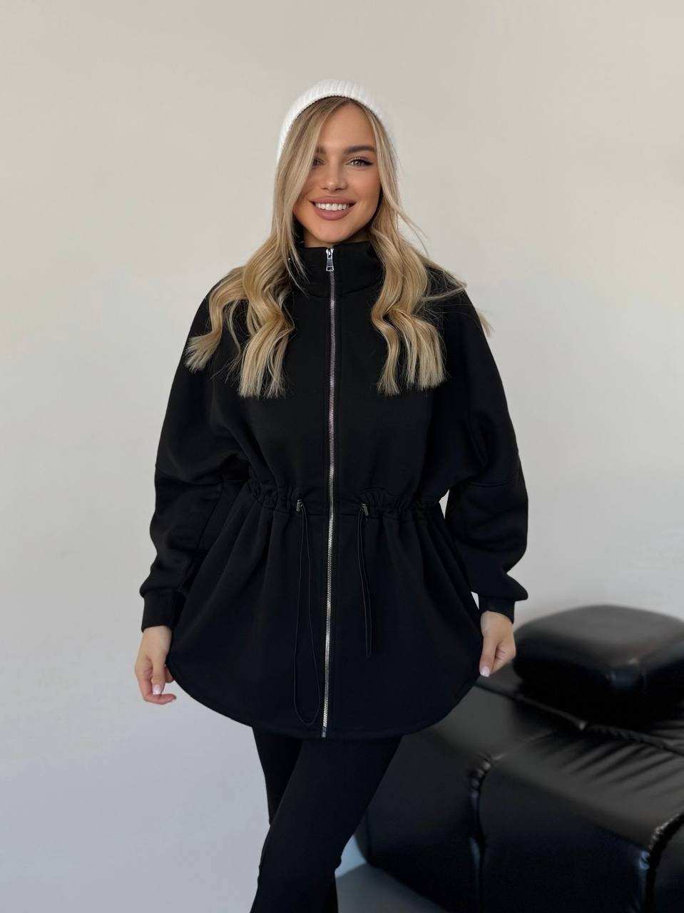 Кофта теплая на молнии на талии регулируется затяжками черный