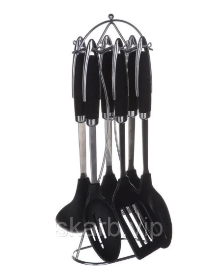 Набор состоит из 7 предметов кухонного обихода, изготовлен из нержавеющей стали с пластиковыми рабочими поверхностями бережно относящимися к посуде с антипригарным покрытием и удобными нескользящими ручками. Набор удобен в использовании и обладает приятным современным дизайном.