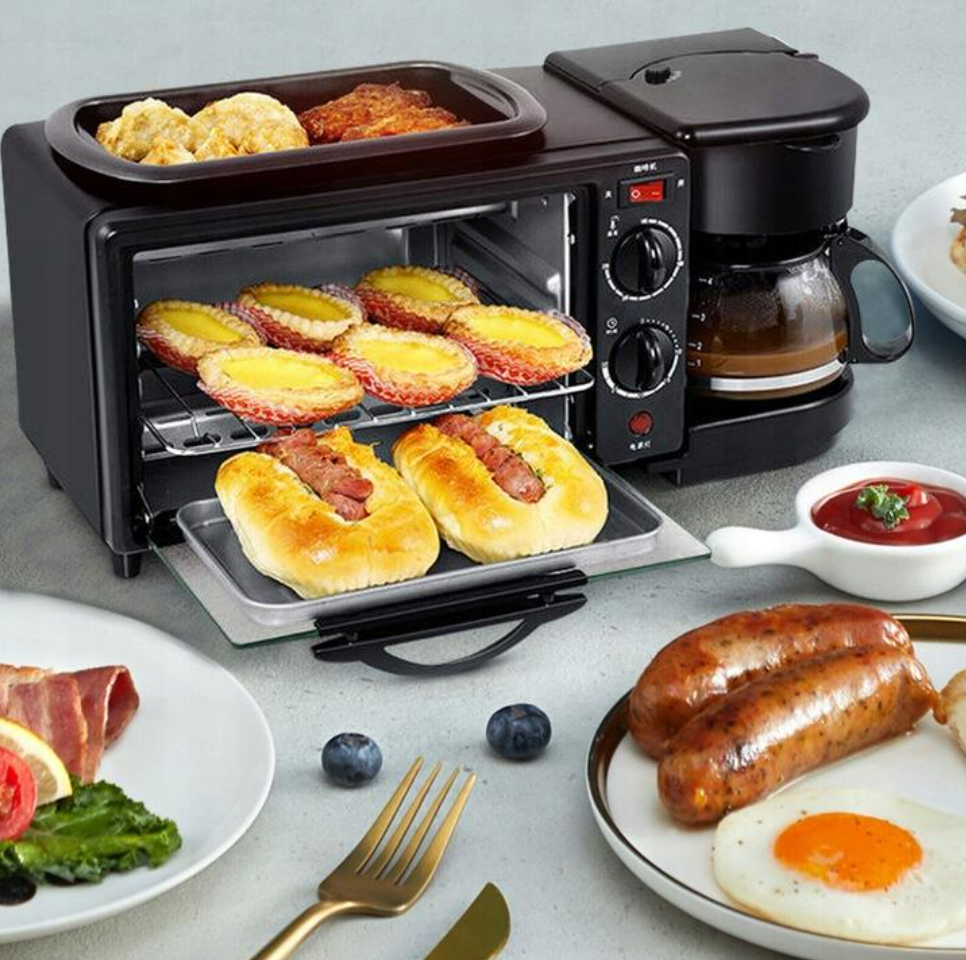 Электрическая печь настольная для кухни для выпекания с кофеваркой и сковородой гриль с крышкой 3в1 (машина для завтрака) Domotec MS 5308B — это удивительный маленький многофункциональный кухонный прибор, который может приготовить до 6 чашек кофе, и даже использоваться для приготовления на сковороде!