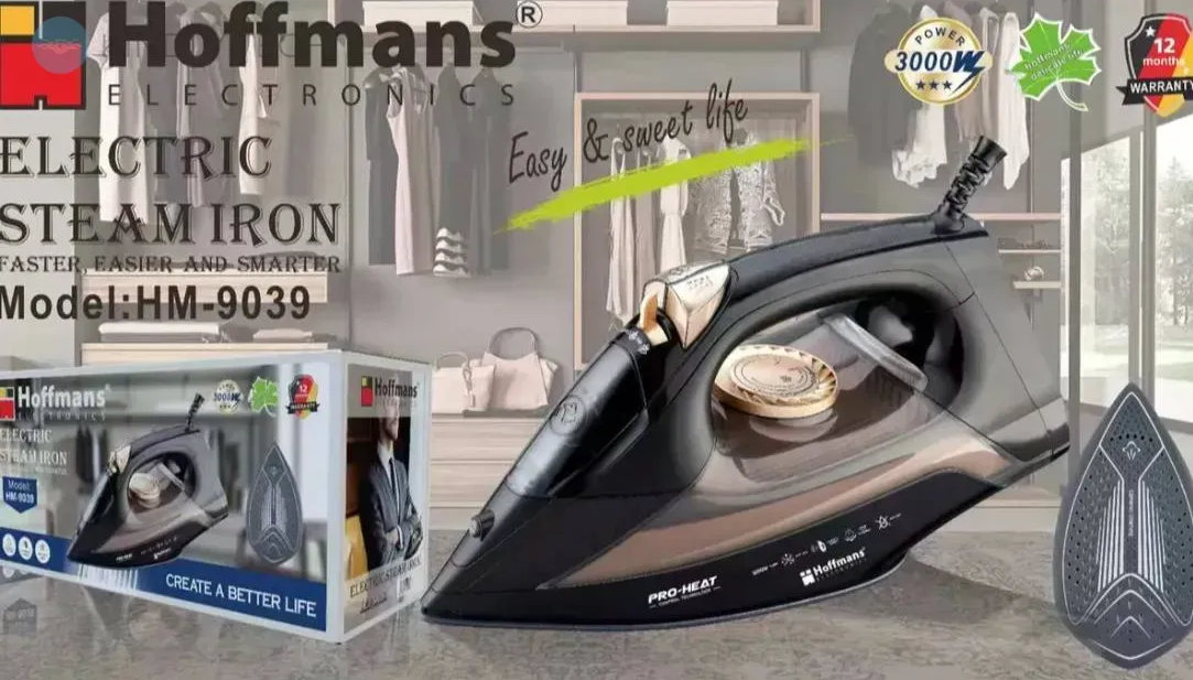 Утюг Hoffmans HM-9039 3000W – мощный и эффективный прибор по уходу за одеждой, оснащенный керамической подошвой и системой самоочистки.