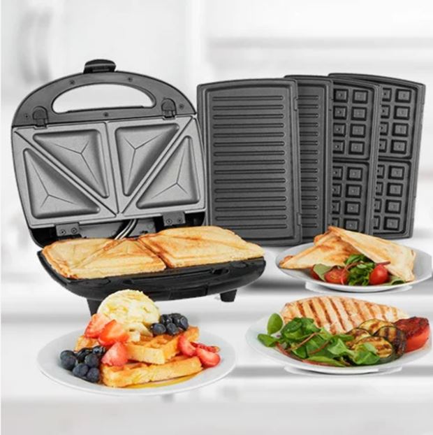 Мультипекарь 3 в 1 — универсальный тостер с тремя сменными насадками сэкономит место на вашей кухне и сделает приготовление всевозможных блюд быстрым и простым. Насадки: насадка вафли, насадка сэндвичи, насадка гриль. Насадки изготовлены из алюминия с антипригарным покрытием, что позволяет готовить с минимальным использованием жиров. Корпус изготовлен из термостойкого пластика и металла. Назначением данного прибора является приготовление вкусных хрустящих сэндвичей с разнообразной начинкой или вкусных вафель.