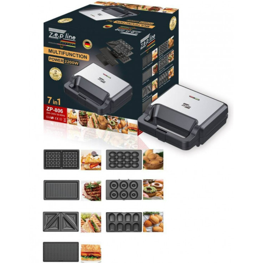 Сэндвичница 7 в 1 оснащена шестью сменными пластинами для приготовления: