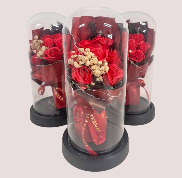 LED-подсветка: Встроенная подсветка придает волшебный свет и акцентирует внимание на букете, создавая романтическую атмосферу.