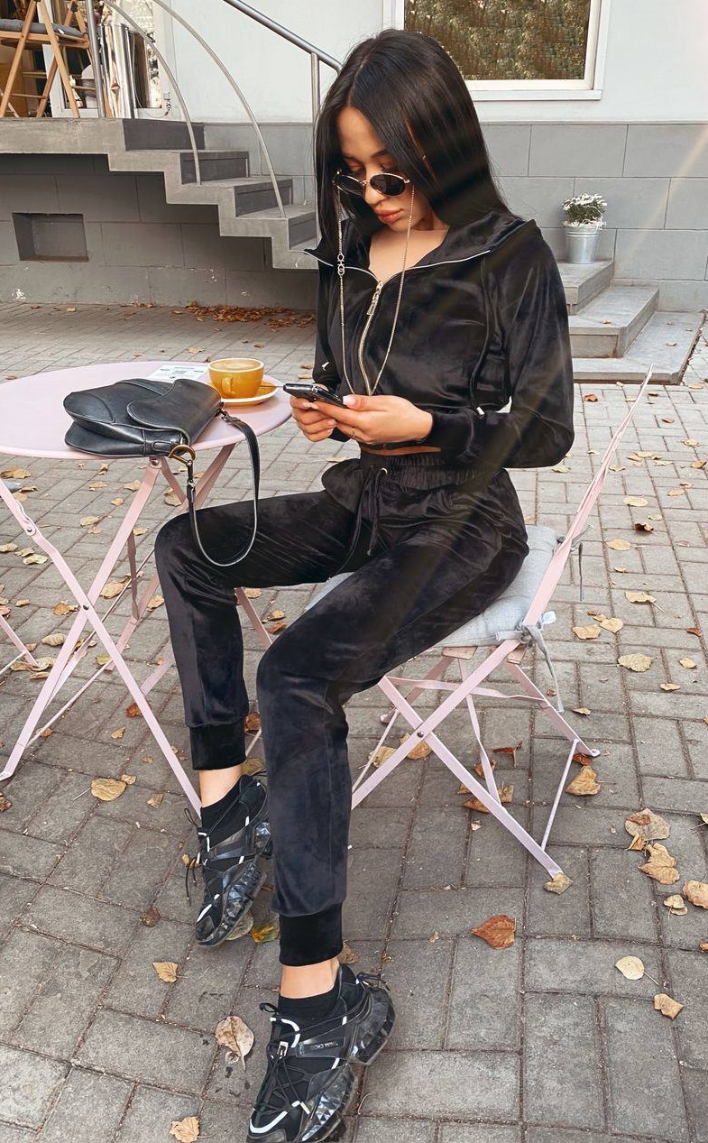 Кофта на молнии, брюки на высокой посадке, с карманами, внизу манжет, удобный и комфортный