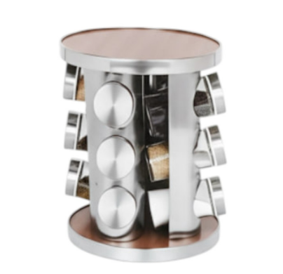 Компактная вращающаяся подставка обеспечивает удобный доступ к приправам и экономит место на кухне.
