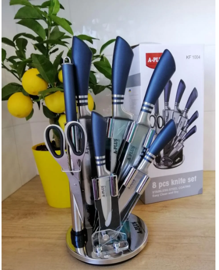 Красивый и функциональный Набор ножей А-Плюс 8 предметов на вращающейся зеркальной подставке