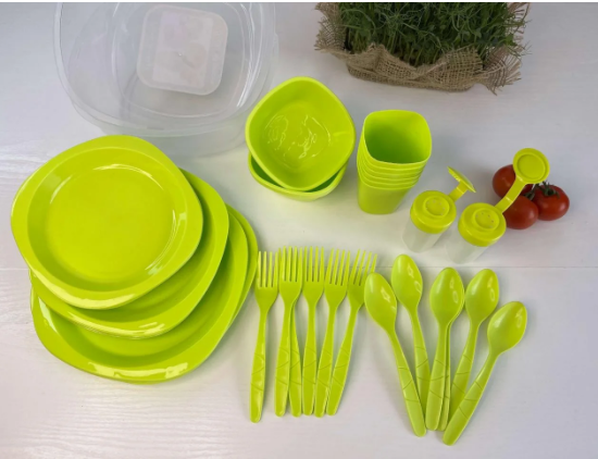 Набор посуды из 48 предметов для пикника изготовлен из пищевого пластика. Такой набор посуды пригодится в походе, на пикнике, вечеринке или детском празднике. Посуда отличается стильным внешним видом. Использовать посуду из набора не только очень удобно, но и безопасно, ведь она не бьется.