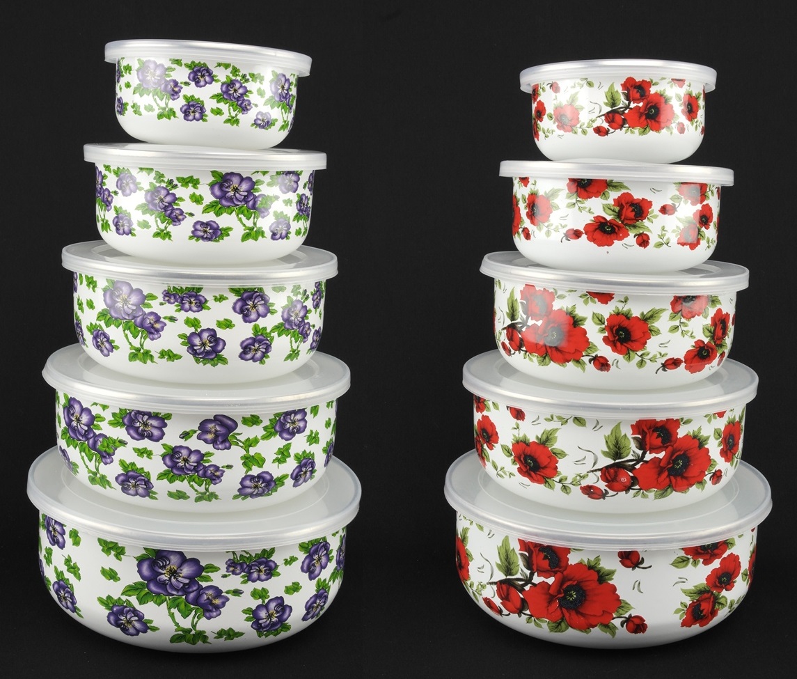 Набор контейнеров круглой формы это те высокопрактичные аксессуары для кухни, без присутствия которых ни обойтись, ни одной настоящей хозяйки! Прочный материал, со временем не теряет своих свойств, позволяет надолго сохранить продукты. Универсальны в использовании. В набор входит эмалированных 5 судочков различного диаметра. Подходит для приготовления различных блюд (салатов, соусов, омлетов и др.), а также для хранения продуктов. Набор прочный и удобный в использовании: занимают мало места при хранении, а также легко моются и чистятся даже после длительной эксплуатации.