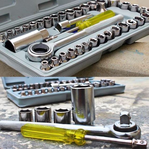 В набор инструментов 40 в 1 входит одна отвертка, один вороток с трещеткой и 36 шестигранных головок разного диаметра. Весь этот перечень насадок подходит для ремонта и сборки-разборки соответствующих устройств. Набор инструментов будет полезен в ремонте автомобиля, бытовых приборов и других видов техники. Набор прекрасно помещается в шкафу, в багажнике машины. Размеры чемоданчика составляют 30,5 см на 14 см на 4 см. Его можно брать с собой в дорогу на случай возникновения непредвиденных ситуаций или хранить в гараже. С таким набором инструментов 40 в 1 вы будете готовы развинтить и завинтить практически любой шестигранный болт или гайку, а также вкрутить шурупы при помощи отвертки в комплекте. Трещетка – очень востребованная составляющая комплекта. Все детали набора сделаны из металла. Отвертка оснащена удобной пластмассовой ручкой, которая увеличивает удобство в использовании. Шестигранники легко крепятся на трещетку, которая имеет резьбу на рукоятке во избежание скольжения руки. Каждая шестигранная насадка имеет выгравированную надпись с обозначением ее диаметра. Для каждой детали в чемоданчике предусмотрен свой отсек, чтобы ни один шестигранник не был утерян. Стоимость товара может варьироваться в зависимости от курса доллара.