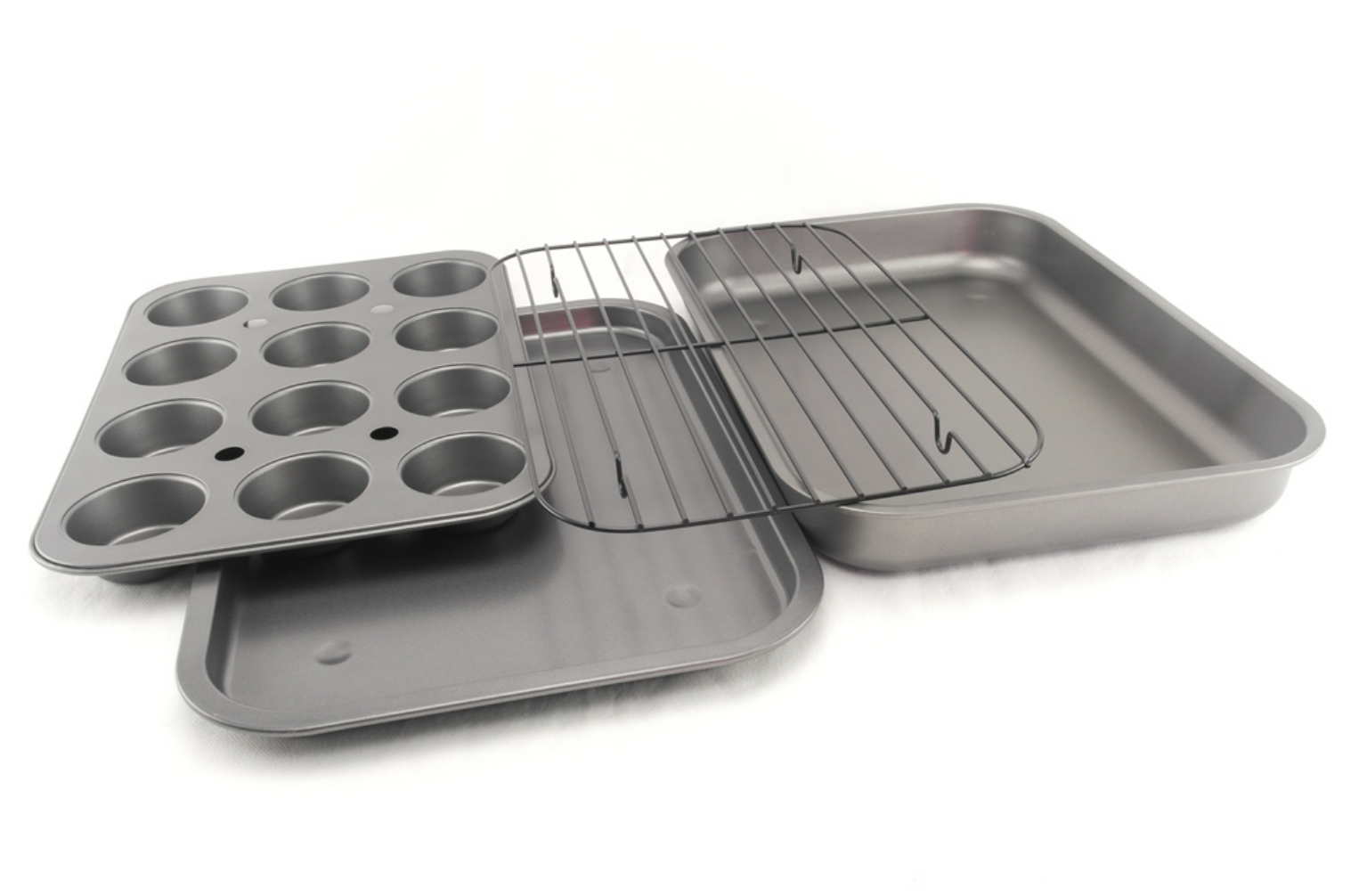 Противени для выпечки из 4 штук оценит каждая хозяйка которая любит баловать свою семьювкусняшками. Изготовлены протвени из высокоуглеродистой стали и покрыт мраморным покрытием высокого качества. Отлично подходит для приготовления рыбы, мяса, овощей. Благодаря решетке продукты не соприкасаются с дном противня, не впитывают жир и масло. Пища, приготовленная на решетке получается более диетическая и полезная.Также в комплекте есть противень для мафинов в котором 12 ячеек.