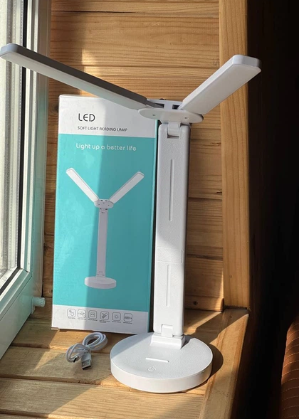 Настольная светодиодная лампа с подставкой для телефона (две лампы, LED, аккумуляторная, USB, 5Вт) — Белый