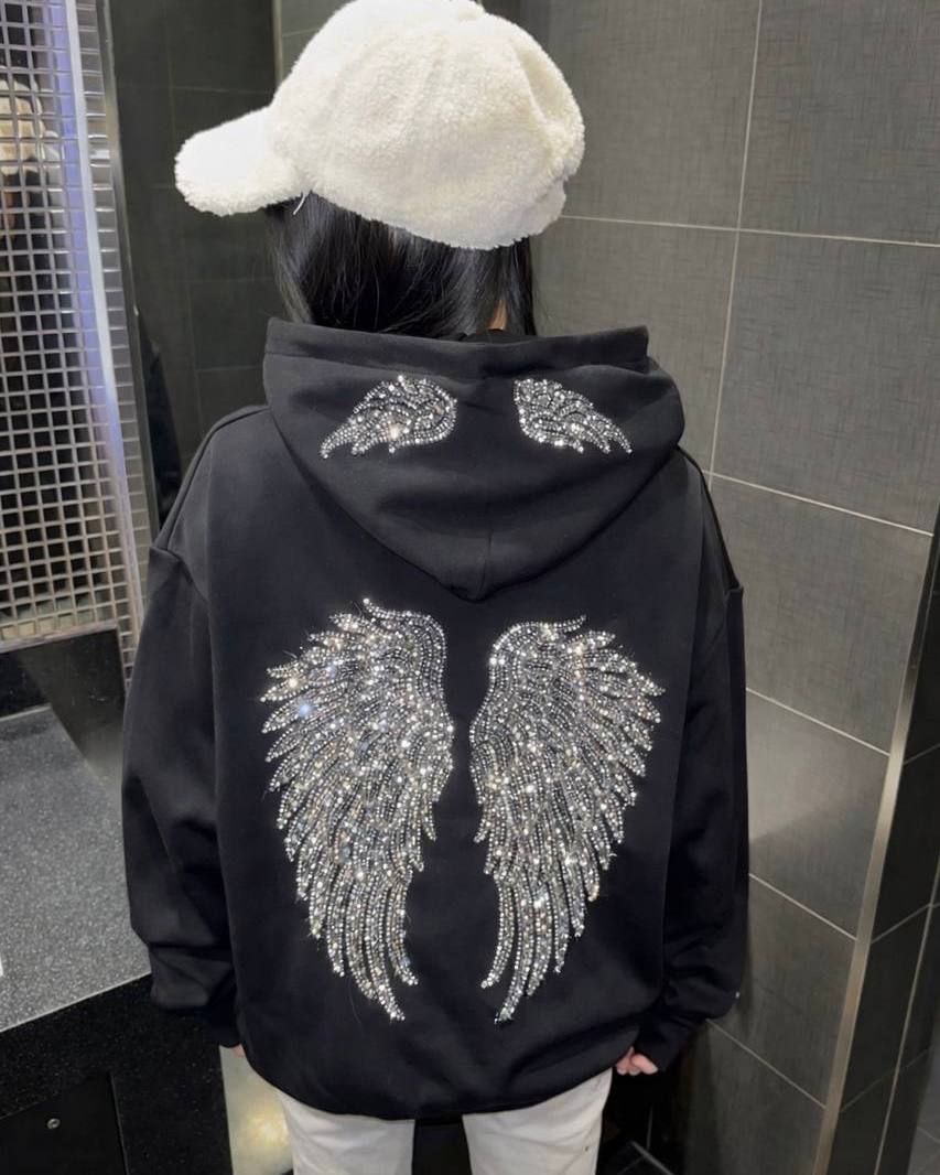 Объемный оверсайз худи с крыльями на спине, из камешков. Приятная мягкая ткань. Имеет карман кенгуру.