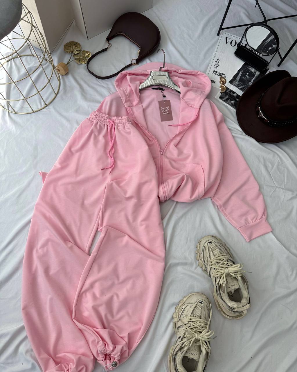 Объемный спортивный костюм в стиле оверсайз (зип-худи+брюки) барби