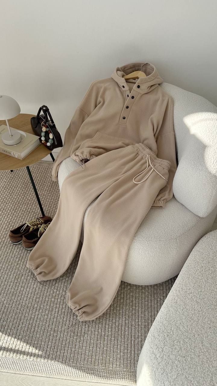 Головна » Магазин » ОДЕЖДА » ЖЕНСКИЕ СПОРТИВНЫЕ КОСТЮМЫ » Оверсайз костюм флисовый: кофта на молнии+штаны бежевый