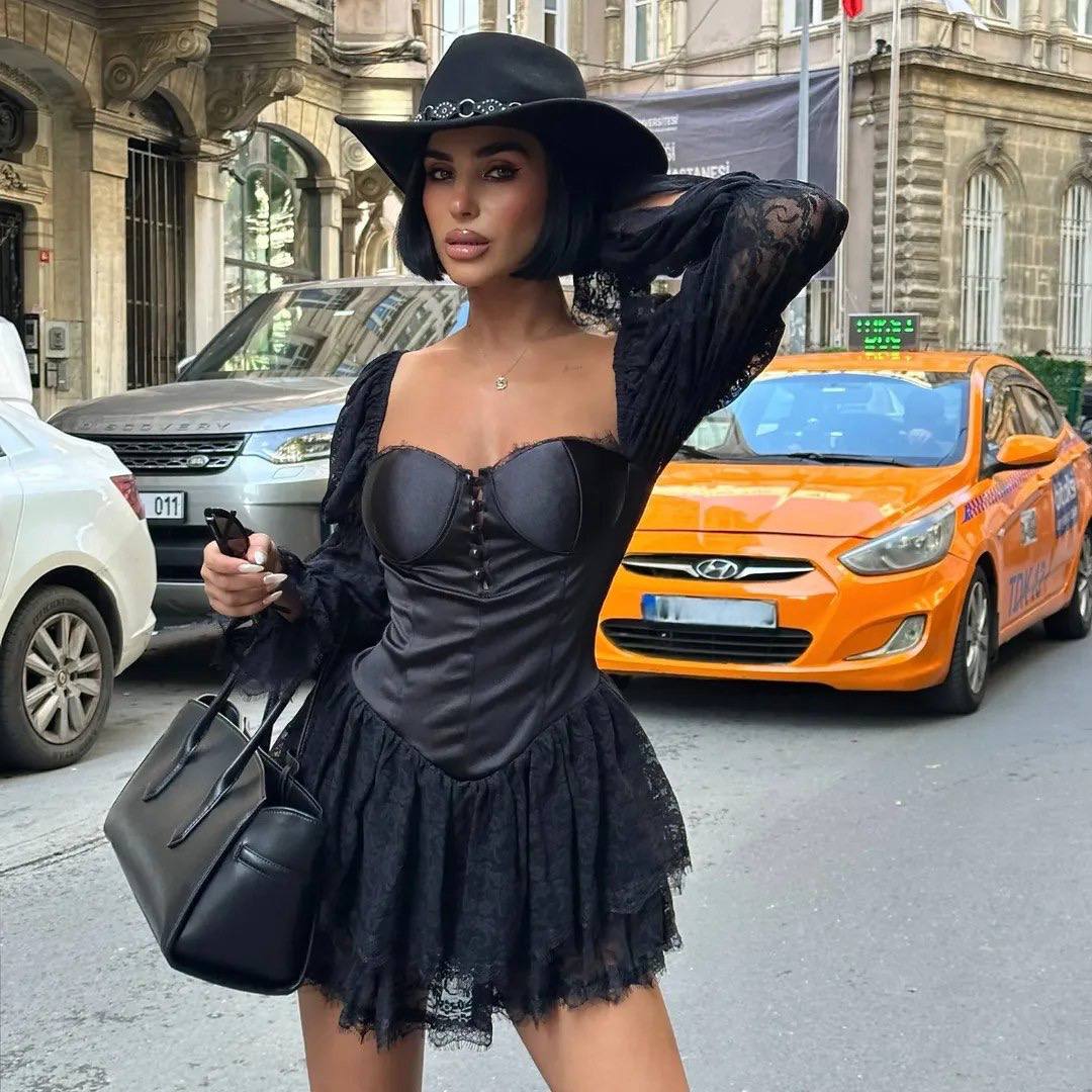 Современная модель с имитацией корсета, с чашками в длине мини.