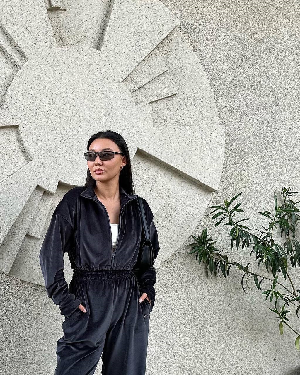 Головна » Магазин » ОДЕЖДА » ЖЕНСКИЕ СПОРТИВНЫЕ КОСТЮМЫ » Плюшевый костюм (укороченная кофта на молнии+свободные брюки) черный