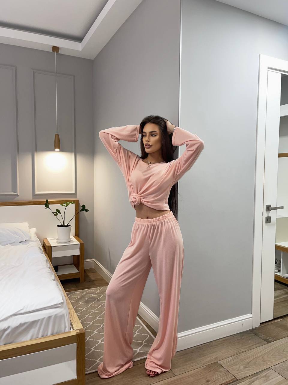 нежная и приятная для тела. Оверсайз крой, высокая посадка брюк, лонг свободного кроя.