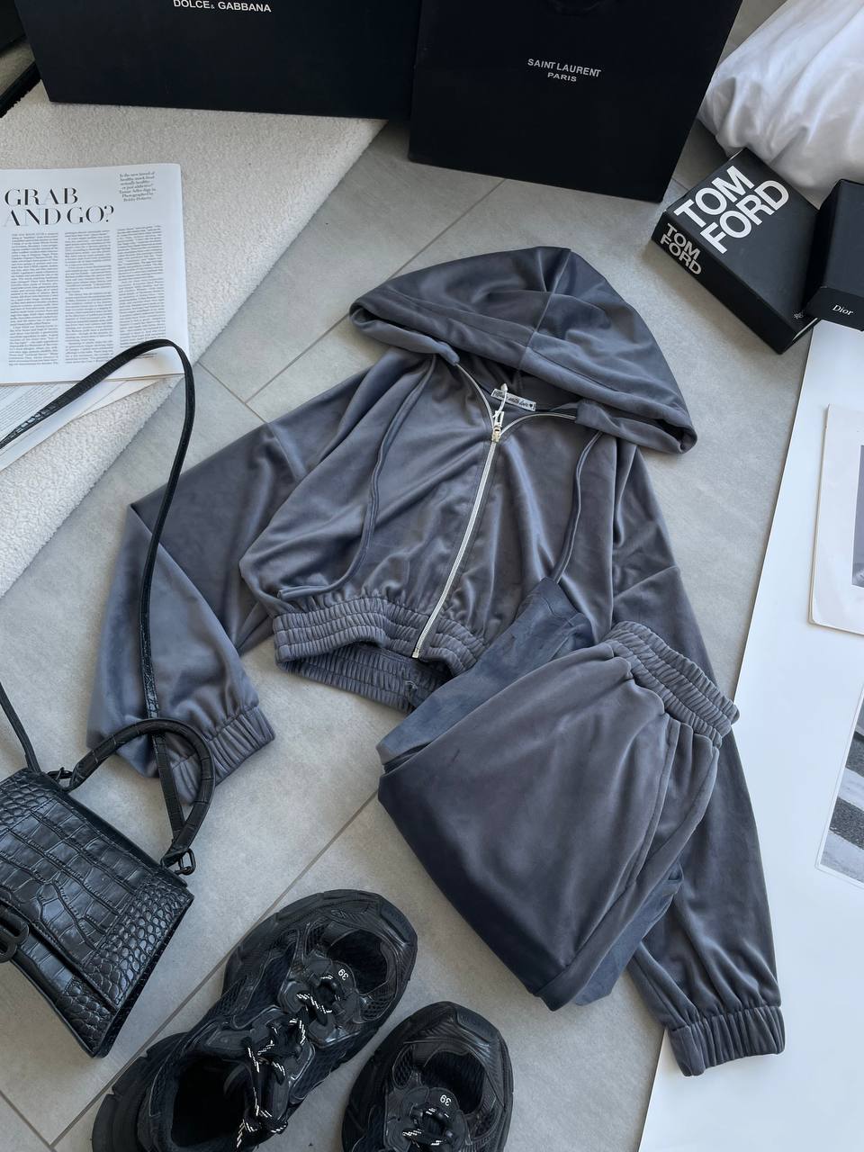 Будьте первым, кто оставил отзыв на “Повседневный костюм (кофта с приспущенными плечами оверсайз+Брюки палаццо на резинке) графит”