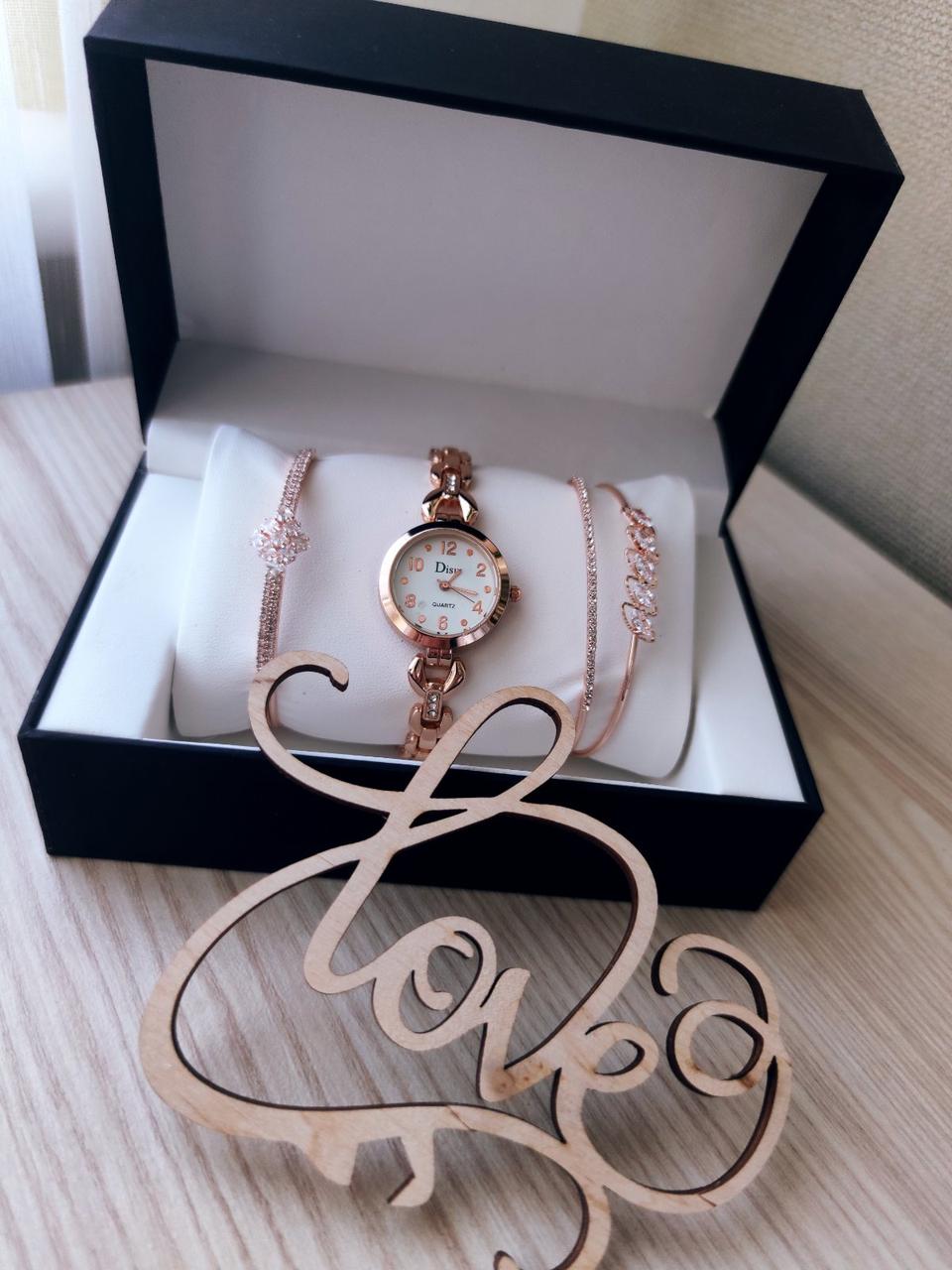 Круглые часы в подарочной упаковке с браслетами — воплощение женственности и шарма! Это красивое и оригинальное украшение, каждую деталь которого можно носить как вместе так и по отдельности.