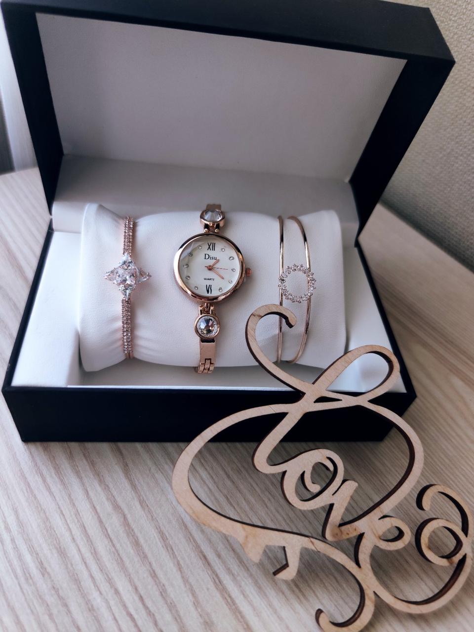 Круглые часы в подарочной упаковке с браслетами — воплощение женственности и шарма! Это красивое и оригинальное украшение, каждую деталь которого можно носить как вместе так и по отдельности.