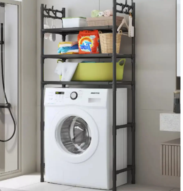 Полка-стеллаж для хранения стиральной машины напольная стойка органайзер Laundry Rack позволяет привлечь свободное место над техникой. Прекрасное решение для каждой хозяйки, которая ценит домашний уют, ведь стойка-органайзер не только экономит ваше пространство, но и ваше личное время, ведь все всегда будет под рукой. Изготовлен из высококачественной нержавеющей стали, крепкий, устойчивый. Вы сможете удобно разместить очистные средства, хозяйственные аксессуары, косметику и банные предметы. Несколько способов использования в полной мере использовать пространство. Стеллаж изготовлен из нержавеющей стали с порошковым покрытием, его легко собрать и установить.