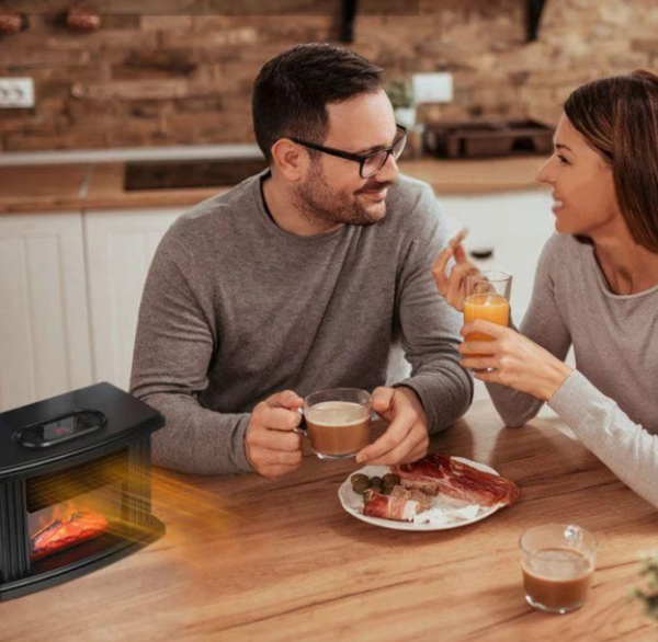 комнатный с имитацией камина и защитой от перегрева с автоотключением и регулировкой температуры Черный.