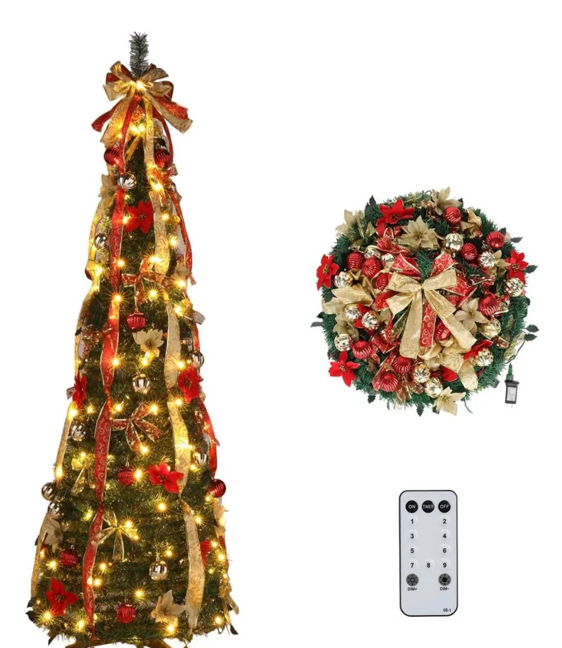 Раскладная елка 1,9м с LED гирляндой и украшениями, подключается к сети с нарядными игрушками