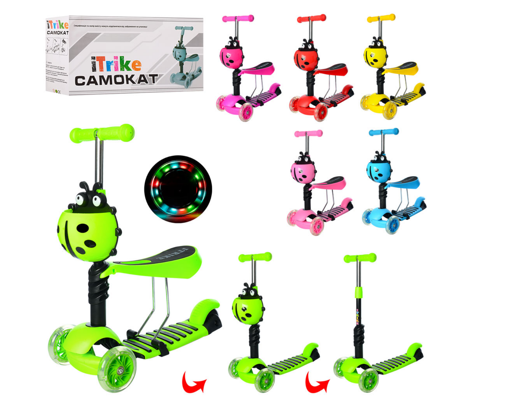 Не можна не відзначити комплектацію самоката. Вона складається з кошика, регульованого керма і сидіння. Тобто за невелику суму ви отримуєте самокат 3 в 1, який має відмінний термін експлуатації. Дитячий триколісний самокат з світящимися колесами стане справжнім другом для вашої дитини.