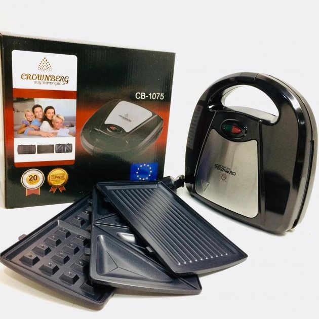 Имеет три типа сменные пластины: вафельница, сэнвичница, гриль;